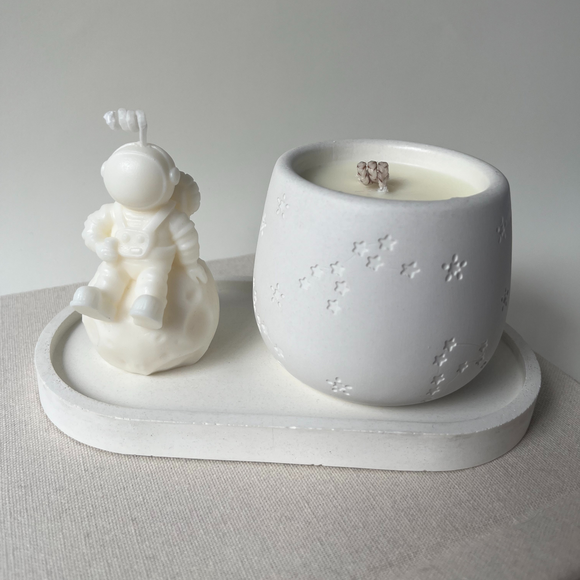 Incluye: Tuni (vela decorativa) + Aurora (vela aromática) + Bandeja decorativa