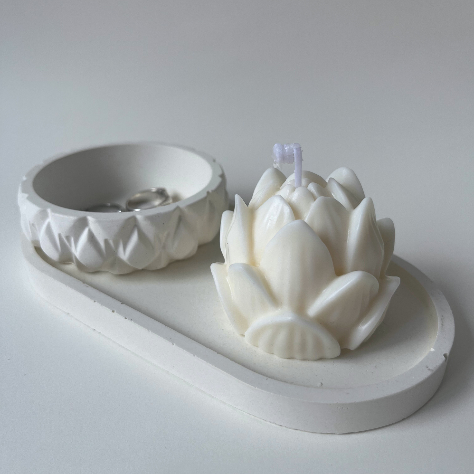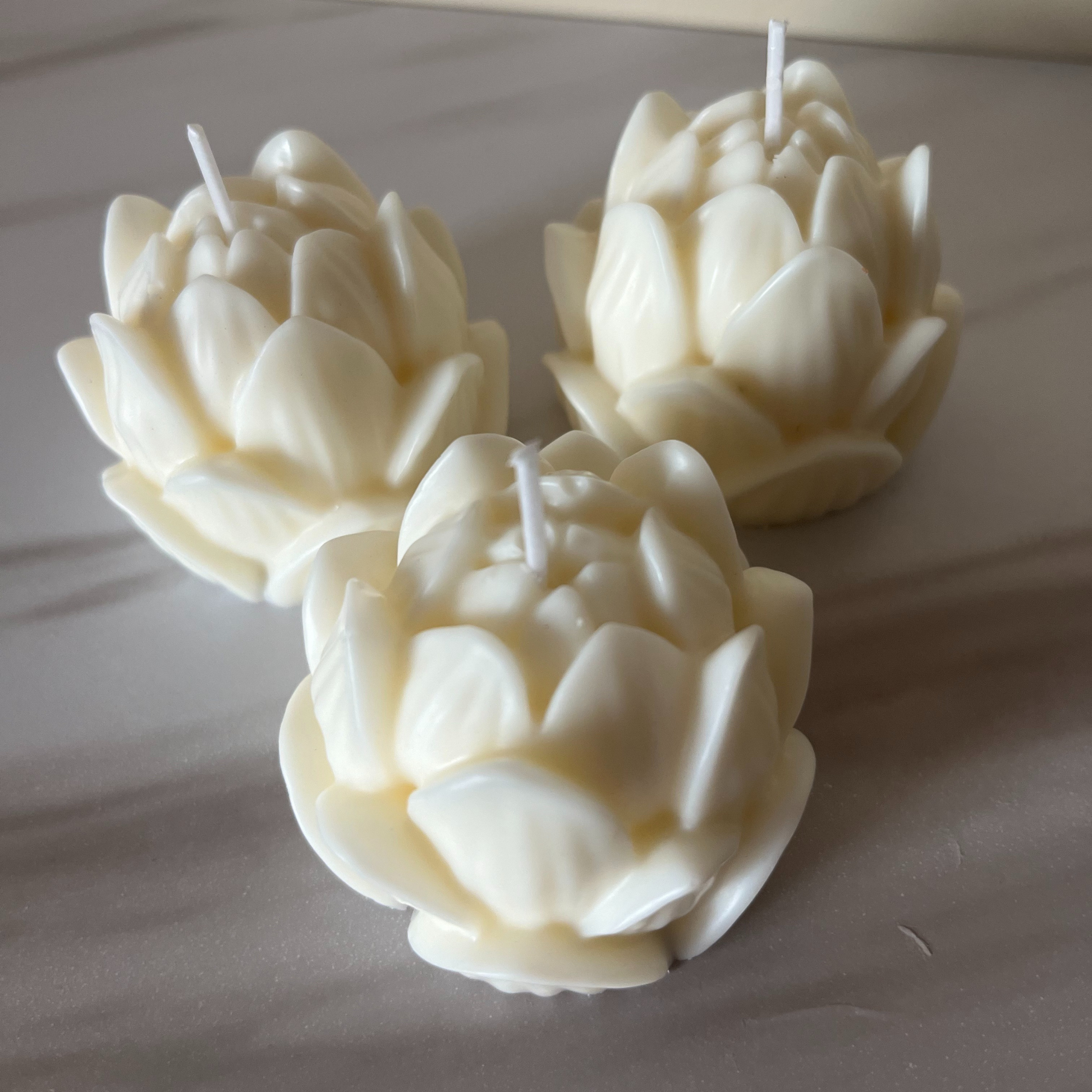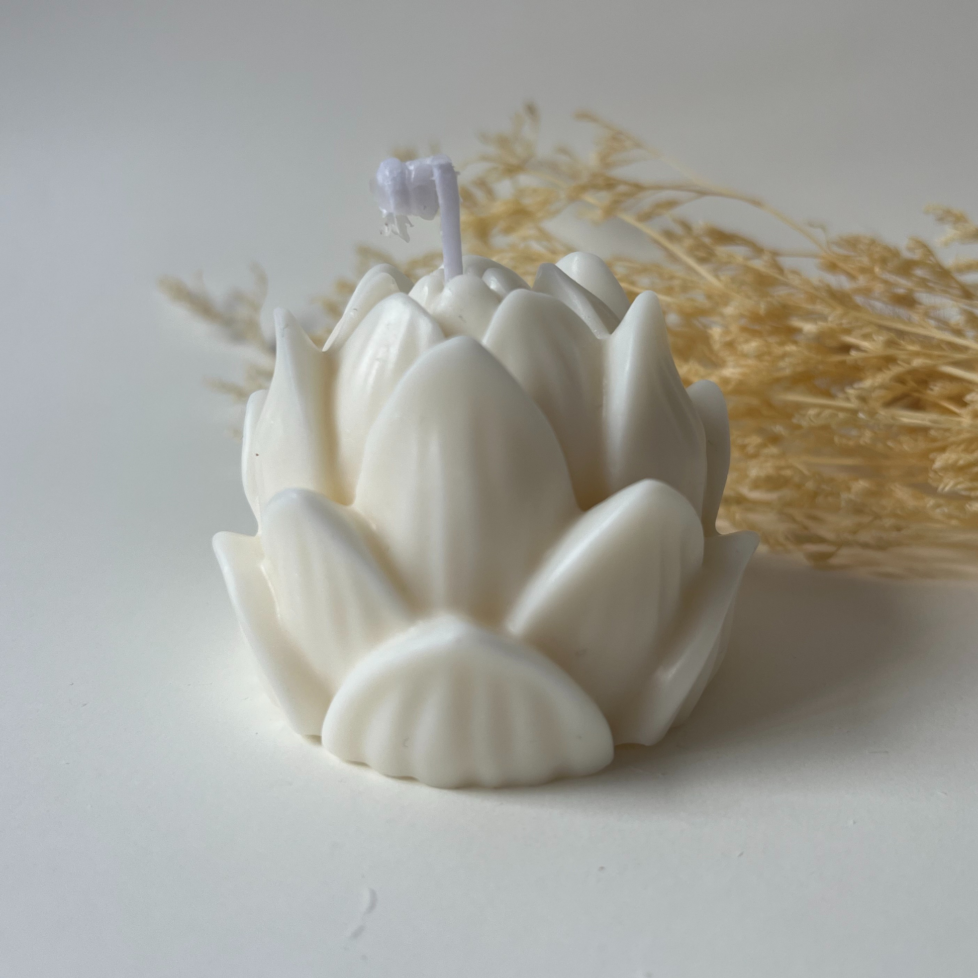 Sin aroma, su diseño minimalista y elegante aporta una sensación de calma y pureza. Cada pétalo simboliza renovación y equilibrio, haciendo de esta vela no solo una pieza decorativa, sino un recordatorio de paz interior.