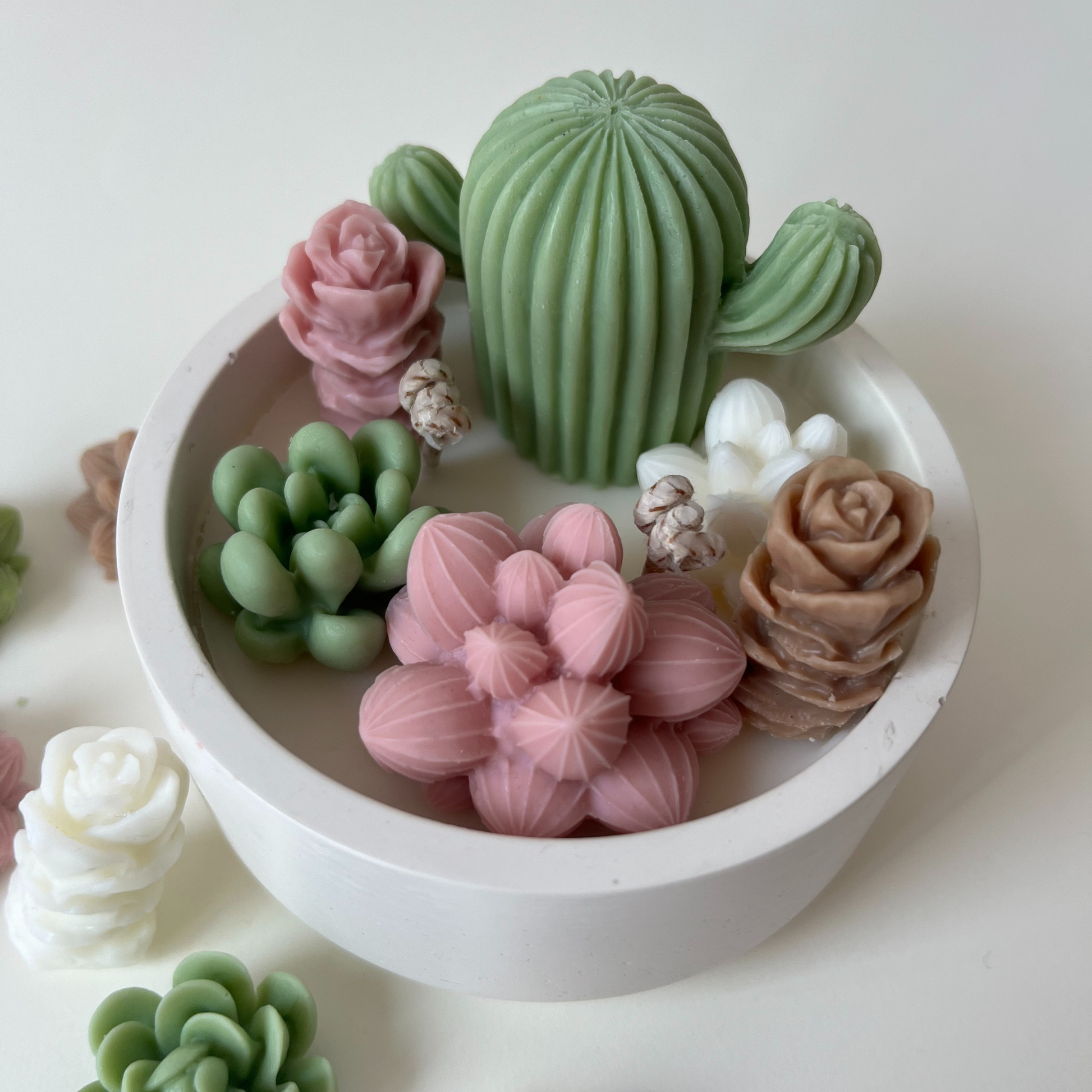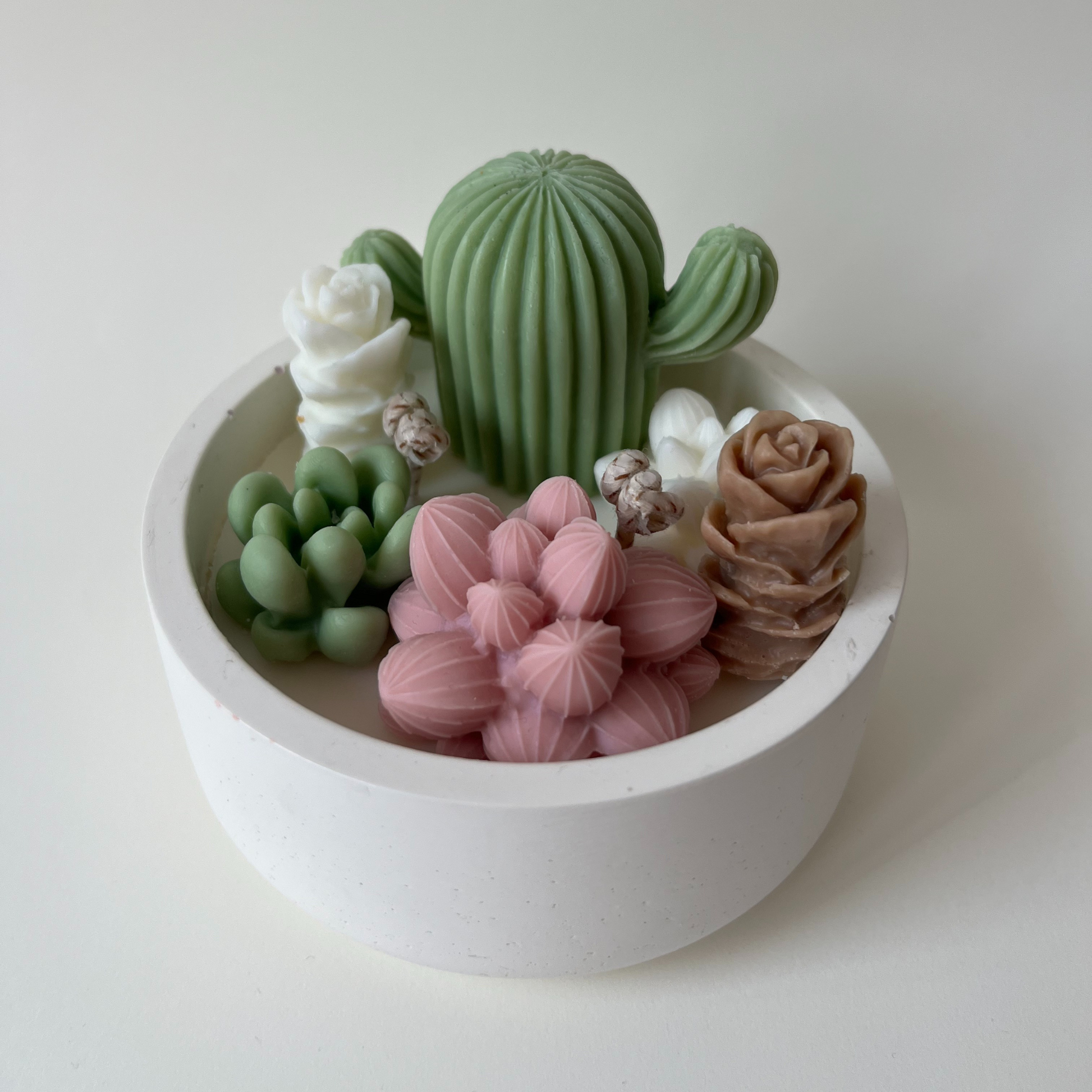 Si las suculentas son tu debilidad, esta vela está hecha para vos. Sucu Lovers es una pieza artesanal única: un recipiente redondo con dos pabilos para una mejor combustión y una superficie intervenida con mini suculentas y cactus de diferentes formas, colores y tamaños. Cada detalle fue pensado para que sientas que tenés un jardín en miniatura, pero perfumado y cálido.