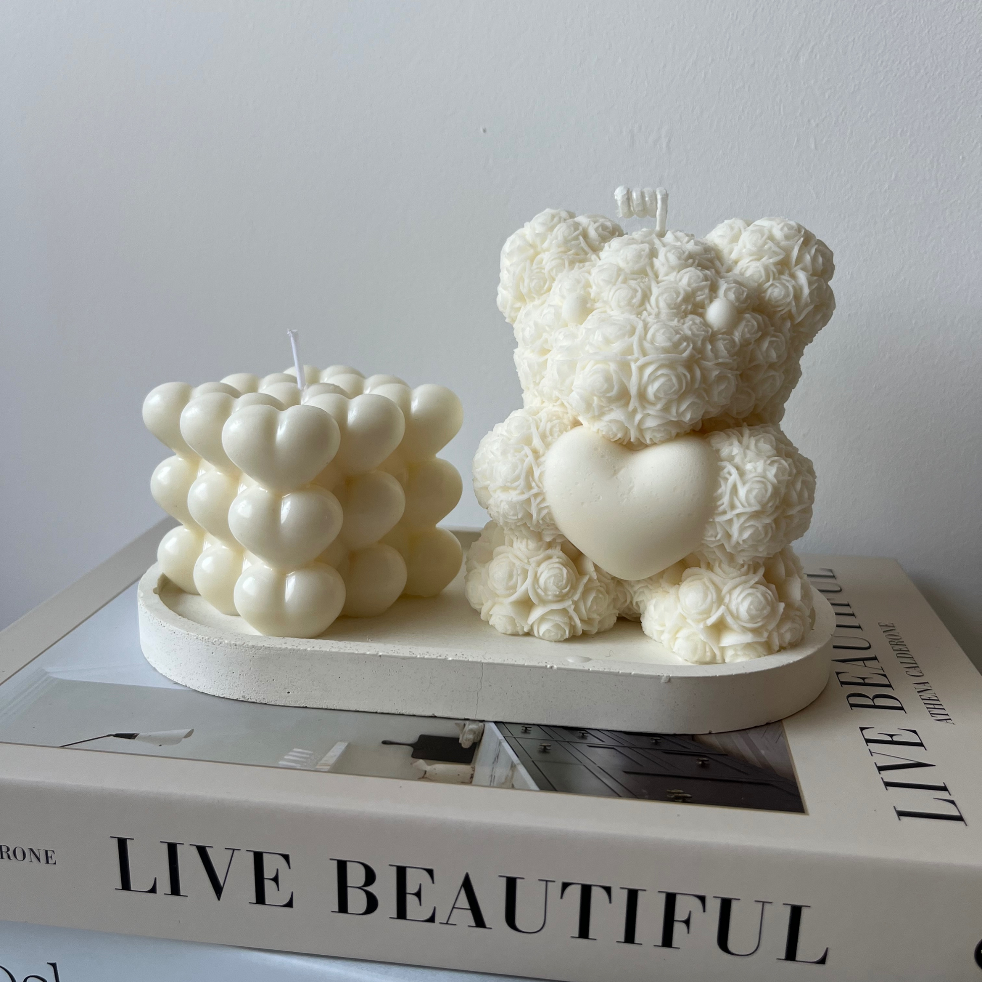 Un pequeño gesto de amor que dice más que mil palabras. Nuestra vela en forma de oso, elaborada artesanalmente con cera de soja 100% vegetal, es la definición de ternura y calidez. Perfecta para regalar o para llenar cualquier espacio con un toque de dulzura y amor.